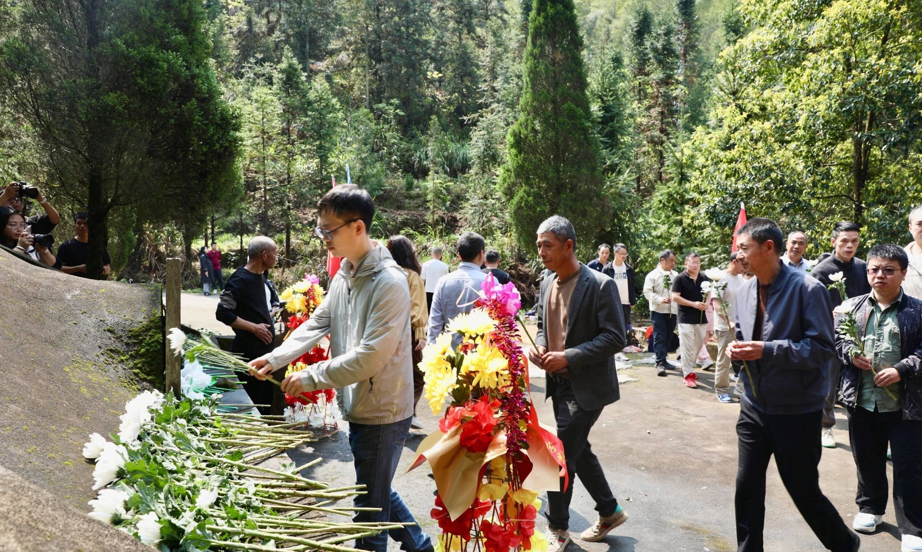 师生们给叶诚忠烈士衣冠冢献花